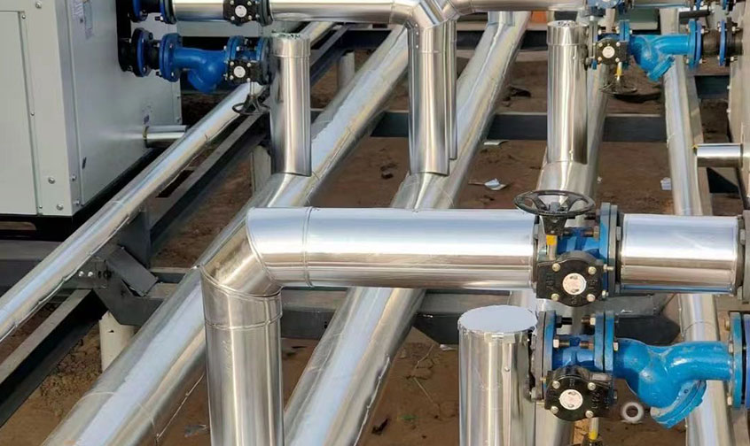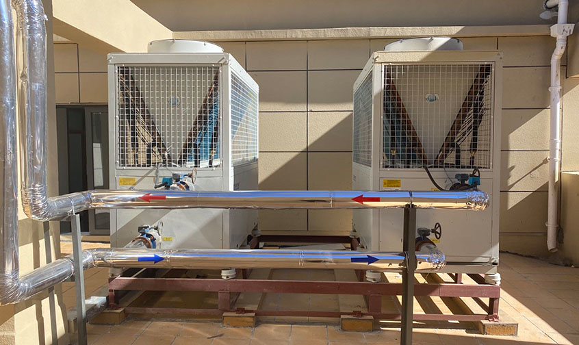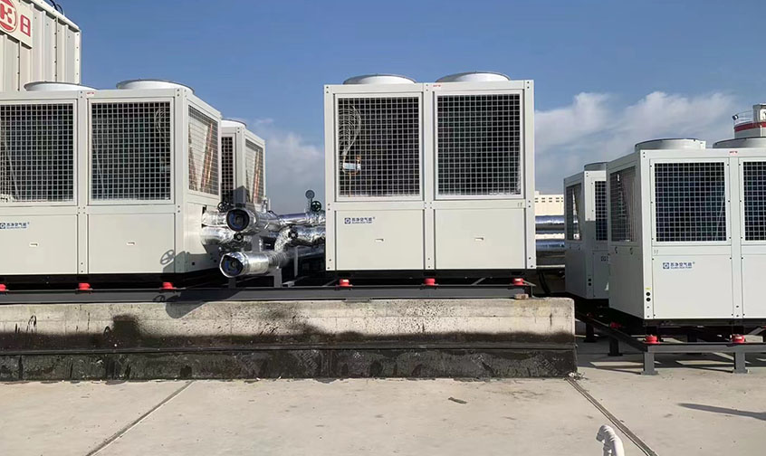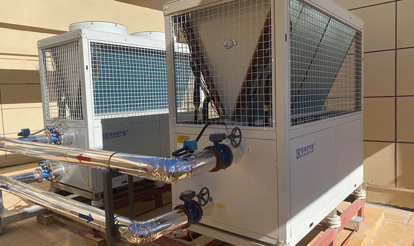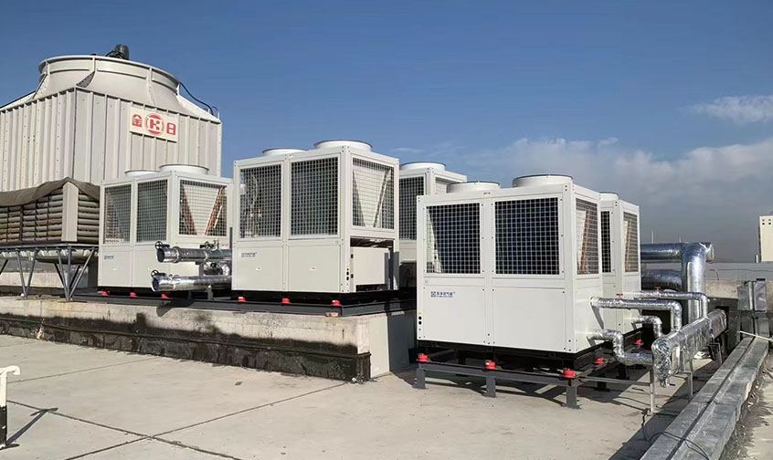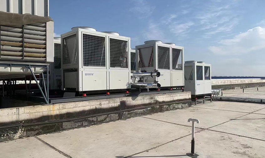 安徽亳州金沙河面粉厂员工宿舍采暖系统,10000平,SJK-50G/IILRD 数量4台,热水30吨,2台30匹热水机组